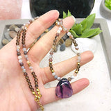 Je suis un modèle unique, personne d'autre n'aura le même bijou que vous. Mon pendentif est en Améthyste naturelle particulièrement appréciée pour se défaire des addiction. Je vous conviendrais particulièrement si vous êtes dans une démarche d'arrêt du tabac.